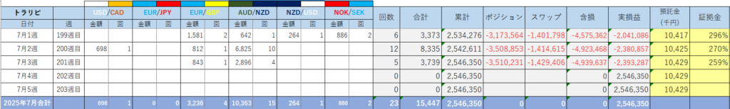 今週は、USD/CADがレンジに戻ってきたことから、マイナス決済がすすみ、12件の約定 8,335円の利益となりました。証拠金維持率は270%危険水域です。謎のドル高、ユーロ高オーバーヒートは近いかも。